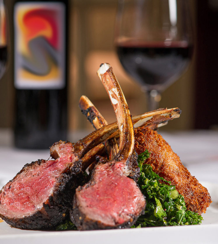 Dine in decadence with cuisine designed by chef Bryan Doell. Savor locally-inspired dishes like the mint glazed Lamb Chops, 10 oz angus center cut filet mignon, 18oz angus ribeye steak.